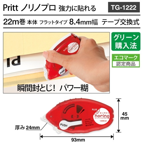 プラス PLUS テープのり ノリノプロ 強力に貼れる 本体 8.4mm×22m T-1222 1箱(ご注文単位1箱)【直送品】