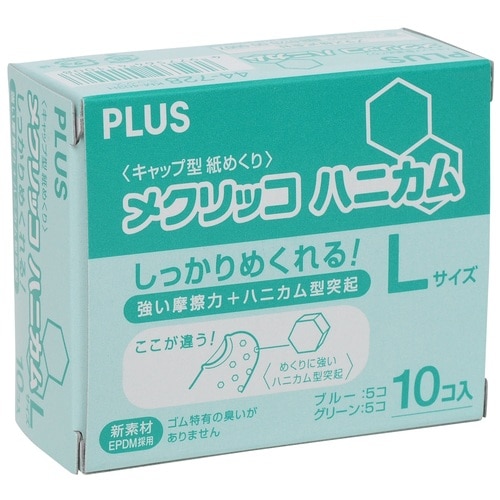 - ハニカム型の突起で紙をしっかりキャッチ!おしゃれなツートーンカラー(カラーミックス)。通気穴と内側の突起が指との密着を防ぎムレにくいです。●寸法:長径18×短径15×長28mm●厚[mm]:(突起部除く)0.8●種別:L●材質:合成ゴム(EPDM)●色:ミックス(ブルー5個・グリーン5個)●入数:10個●本体重量[g]:1