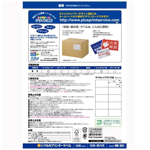 プラス PLUS ラベル いつものラベル 森林認証紙 10面 余白無 100枚 ME-561T 48-655 1袋(ご注文単位1袋)【直送品】