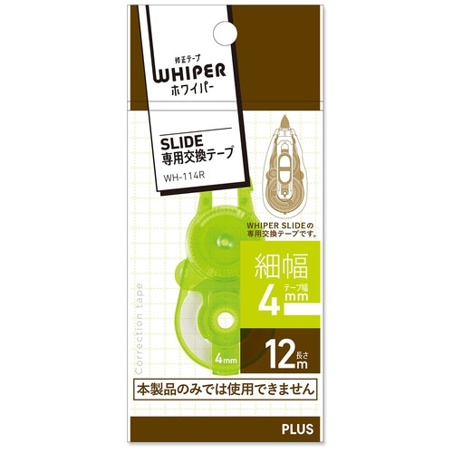 プラス PLUS 修正テープ ホワイパースライド ポップカラー 交換テープ 4mm ライムグリーン LR WH-114R 1個(ご注文単位1個)【直送品】