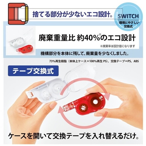 プラス PLUS 修正テープ ホワイパースイッチ 交換テープ 6mm レッド WH-1516R 1個(ご注文単位1個)【直送品】