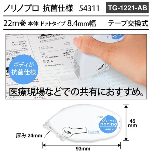 プラス PLUS テープのり ノリノプロ抗菌本体 T-1221-AB54311 1個(ご注文単位1個)【直送品】