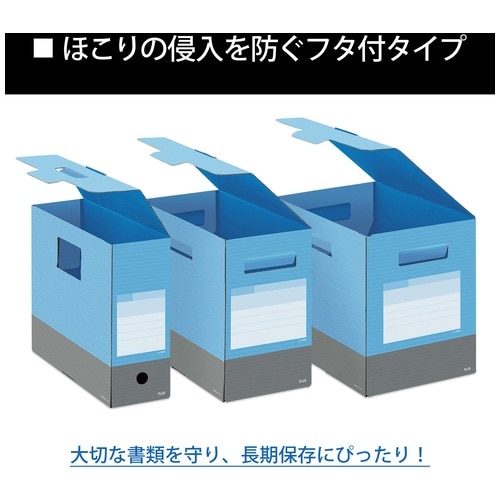プラス PLUS ファイルボックス フタ付き A4横 背幅200mm デジャヴ スカイブルー 76-461 1冊(ご注文単位1冊)【直送品】