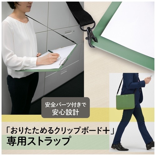 プラス PLUS おりたためる クリップボード +用ストラップ ブラック 1個(ご注文単位1個)【直送品】