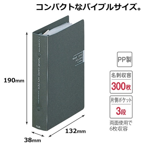プラス PLUS 名刺ホルダー 300名用 ハンディ 6穴リング FL-108NC 84-281 ダークグレー 1冊(ご注文単位1冊)【直送品】