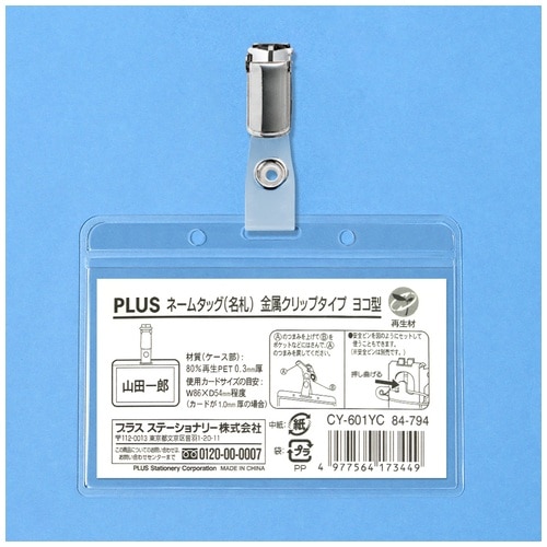 プラス PLUS 名札 ネームタッグ パスケース CY-601YC 横型 84-794 1枚(ご注文単位1枚)【直送品】