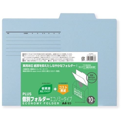 プラス PLUS 個別フォルダーエコノミー 10枚 A4横 FL-081IF 87-412 ロイヤルブルー 1袋(ご注文単位1袋)【直送品】