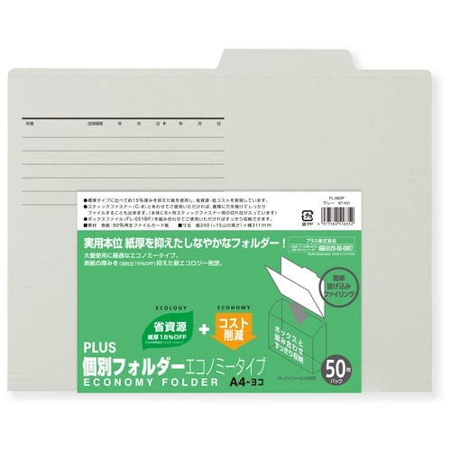 プラス PLUS 個別フォルダーエコノミー 50枚 A4横 FL-082IF 87-431 グレー 1袋(ご注文単位1袋)【直送品】