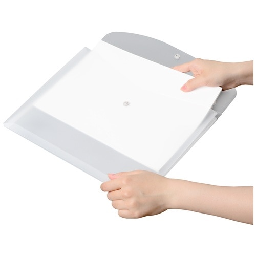- 背面にクリアポケットが付いたエンベロープ。しっかりとまるホック式。書類を入れたまま中身が見える背面ポケット付。●外形寸法(縦)[mm]:255●外形寸法(横)[mm]:320●色:クリアー●収容枚数[枚]:コピー用紙約300●厚[mm]:0.2●マチ幅[mm]:30●規格:A4ヨコ型●仕様:ホック式●材質:ポリプロピレン●入数:10冊(1冊×10冊)●ポケット付エンベロープ<マチ付>●本体重量[g]:47