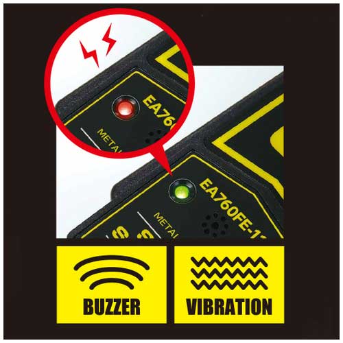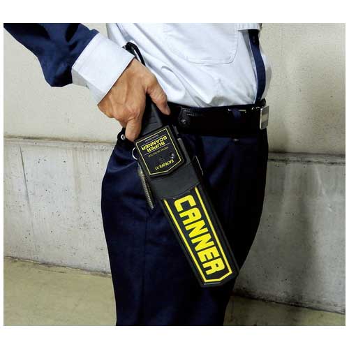 - ボディーチェック時に使用するハンディタイプの小型金属探知機です。ブザーモードとサイレントバイブレーションモードの切替ができます。●外寸(幅x奥x高):93×420×50mm●質量:0.4kg●電源:9V乾電池×1個(別売)●機能:感度調整=無段階調整●付属品:ホルスタ-●目安探知距離:金属ピン=30~60mm、硬貨サイズの金属=75~100mm、15cm程のナイフ=160~180mm