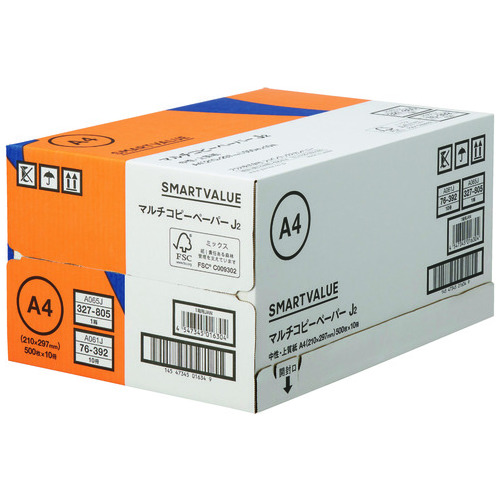 スマートバリュー コピーペーパーJ2 中性紙 A4 5000枚A065J 1箱(ご注文単位1箱)【直送品】