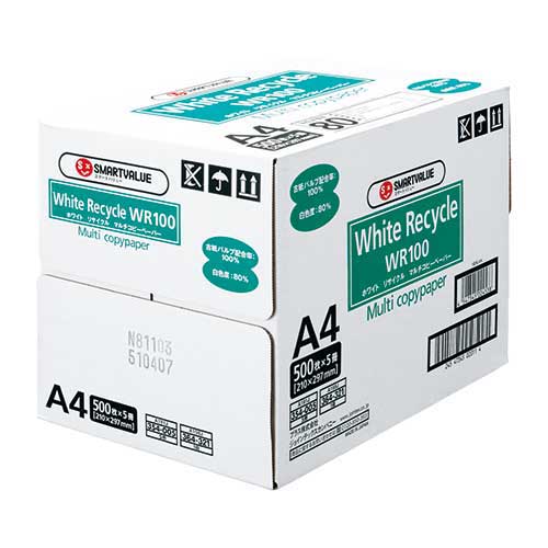 スマートバリュー コピーペーパー WR100 A4 箱 A198J 2500枚/箱(ご注文単位1箱)【直送品】