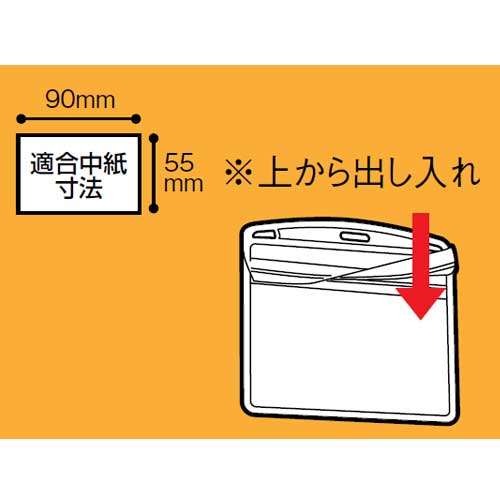 表面特殊加工で名札表面に傷などが付きにくい名札替ケースです。●入数:10枚●ケースタイプ:ソフトタイプ●ケース入口仕様:チャックタイプ●中紙:有●適合中紙寸法(縦)[mm]:55●適合中紙寸法(横)[mm]:90●種別:名刺型ヨコ●材質:オレフィン系樹脂●注意事項:中紙のみのお取扱いはありません。●外形寸法:縦79×横103mm●名札ケース厚:0.3mm(上部タッグ穴部0.6mm)●タッグ穴サイズ:楕円形部=幅12×高3mm、両側円形部=幅5×高3mm●JOINTEXオリジナル