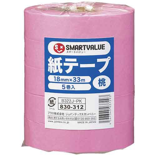 スマートバリュー 紙テープ 5巻入 桃 B322J-PK 1パック(ご注文単位1パック)【直送品】