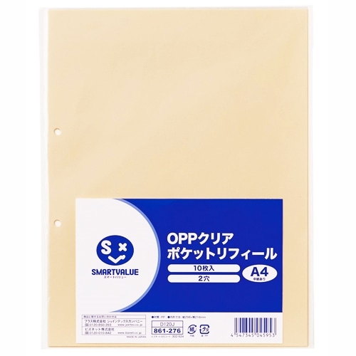 スマートバリュー OPPクリアポケット 中紙有2穴 10枚 D120J 1パック(ご注文単位1パック)【直送品】
