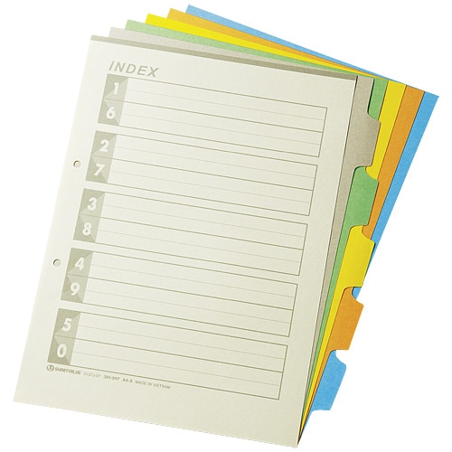 - 5山の2穴タイプです。●外形寸法(縦)[mm]:297●外形寸法(横)[mm]:222●インデックス寸法(縦)[mm]:38●インデックス寸法(横)[mm]:12●穴数[穴]:2●穴間隔[mm]:80●規格:A4-S●仕様:5色5山6枚1組●材質:色クラフト紙●入数:10組●再生インデックス<タテ型>