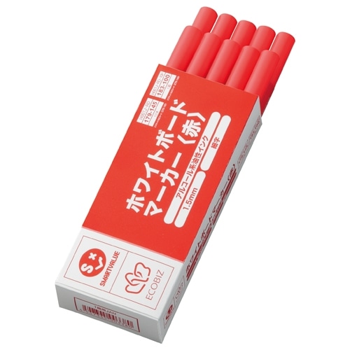 スマートバリュー ホワイトボードマーカー 細字 赤 H007J-RD-10P 1箱(ご注文単位1箱)【直送品】