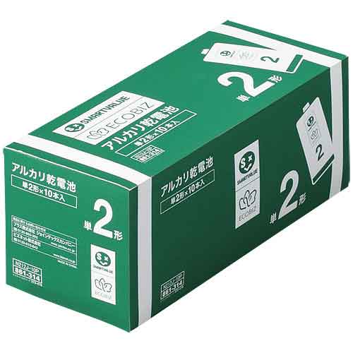 スマートバリュー アルカリ乾電池Ⅲ 単2×10本 N212J-10P 1箱(ご注文単位1箱)【直送品】