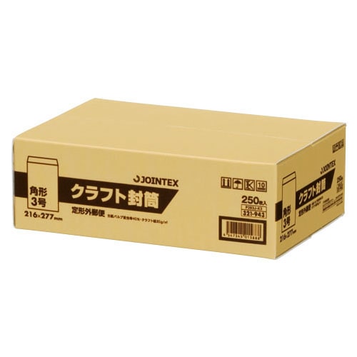 ジョインテックス クラフト封筒 角3 250枚 P283J-K3 1箱(ご注文単位1箱)【直送品】