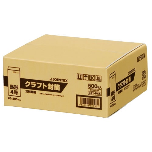 ジョインテックス クラフト封筒 長4 P283J-N4 500枚/箱(ご注文単位1箱)【直送品】