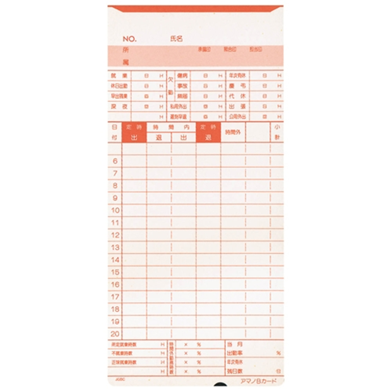 アマノ タイムカード B 100枚/箱