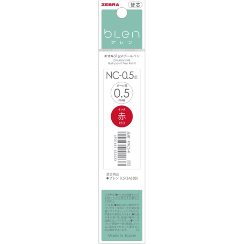 ゼブラ ボールペン替芯NC-0.5 RNC5-R 赤 10本 1個(ご注文単位1個)【直送品】
