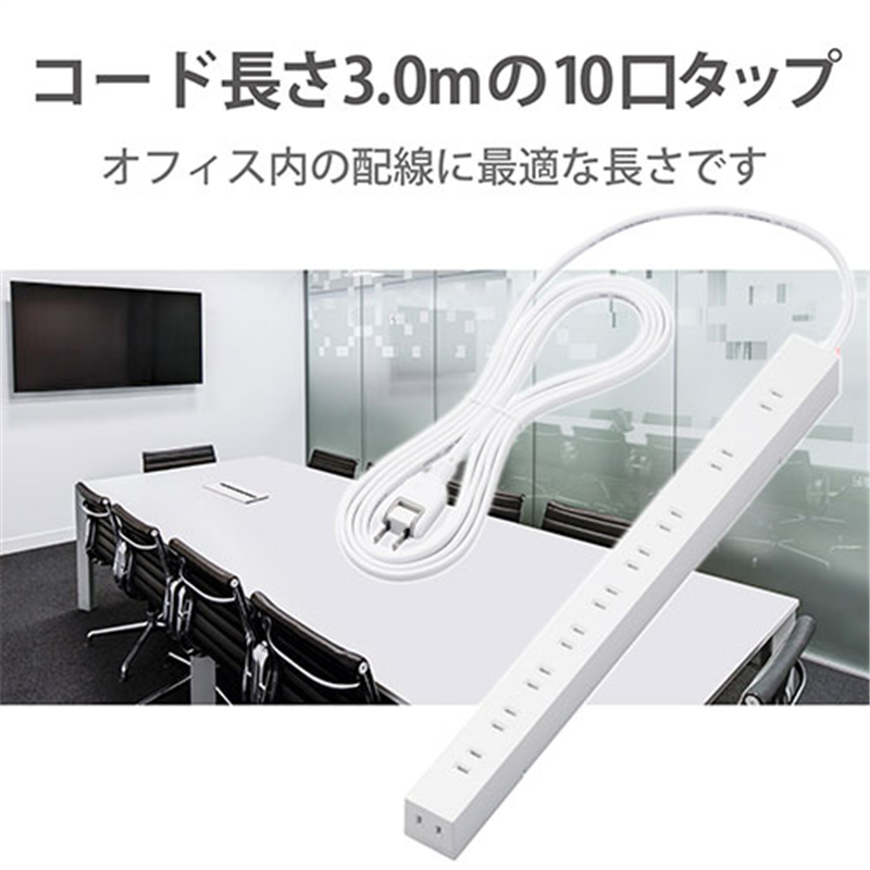 エレコム 電源タップ10個口 マグネット付 T-H0203WH 1個(ご注文単位1個)【直送品】