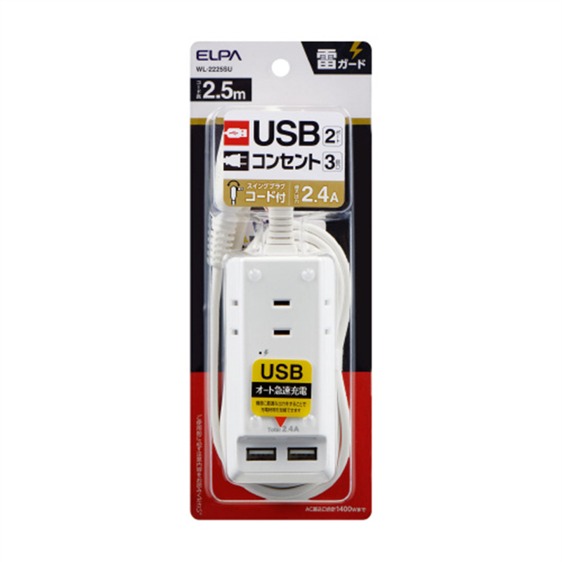 朝日電器 耐雷USBポートタップ3個口2.5m WL-2225SU 1個(ご注文単位1個)【直送品】
