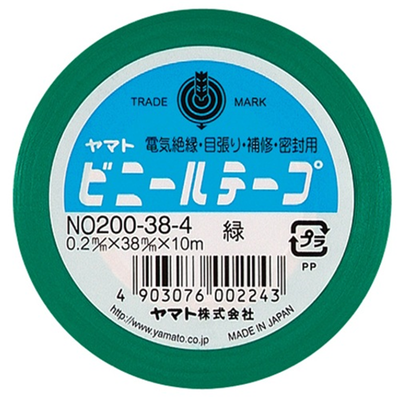 ヤマト ビニールテープ NO200-38-4 38mm×10m 緑 1個(ご注文単位1個)【直送品】