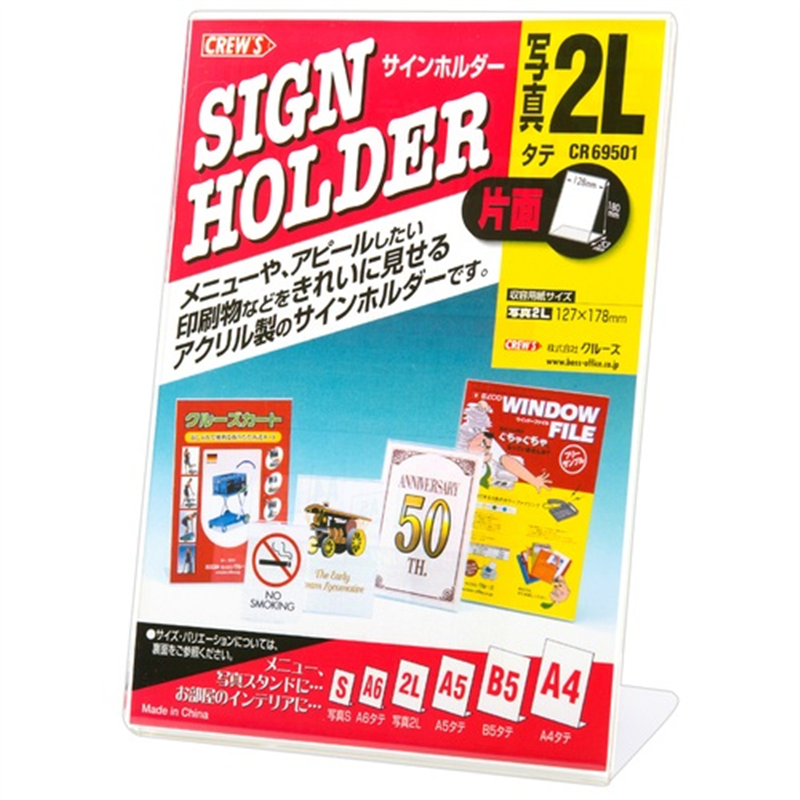 クルーズ サインホルダー片面用2L縦 CR69501 1個(ご注文単位1個)【直送品】