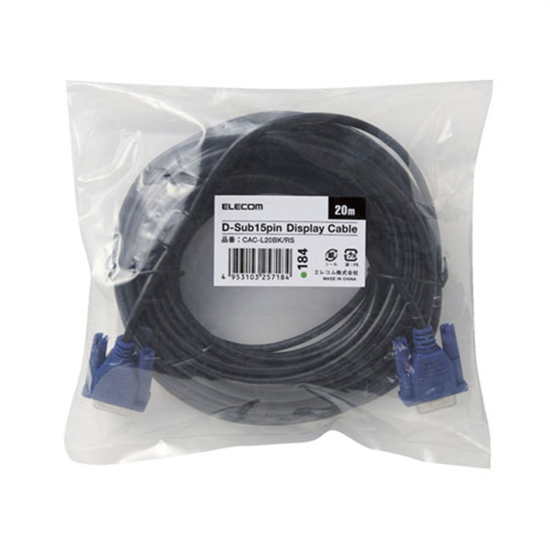 エレコム ディスプレイケーブル 20m CAC-L20BK/RS 1個(ご注文単位1個)【直送品】