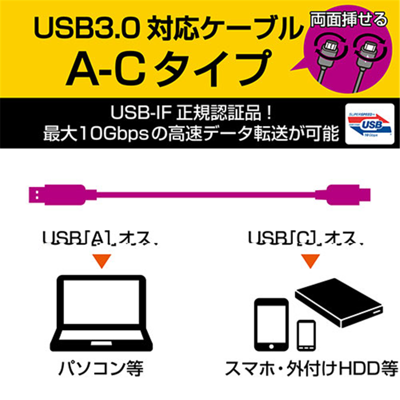エレコム USB3.1(Gen2)ケーブル 1.0m ブラック 1個(ご注文単位1個)【直送品】