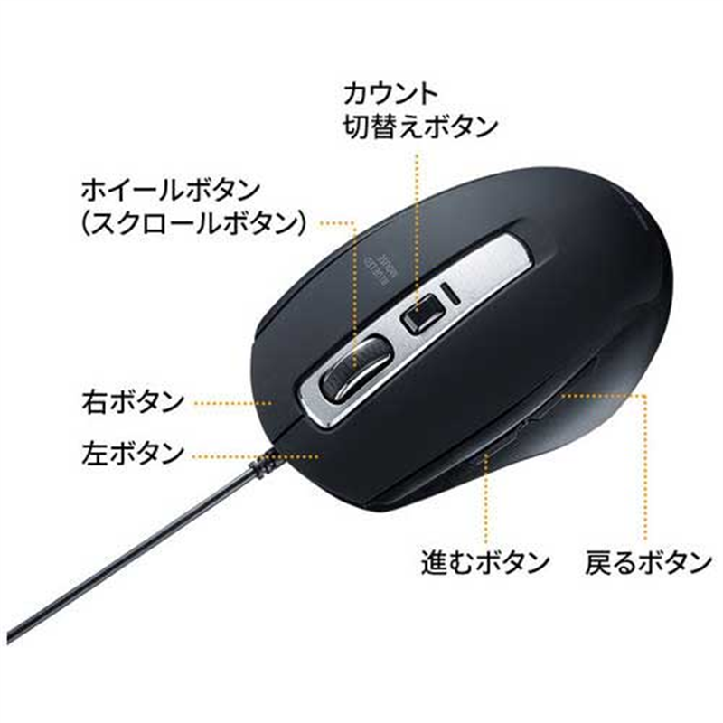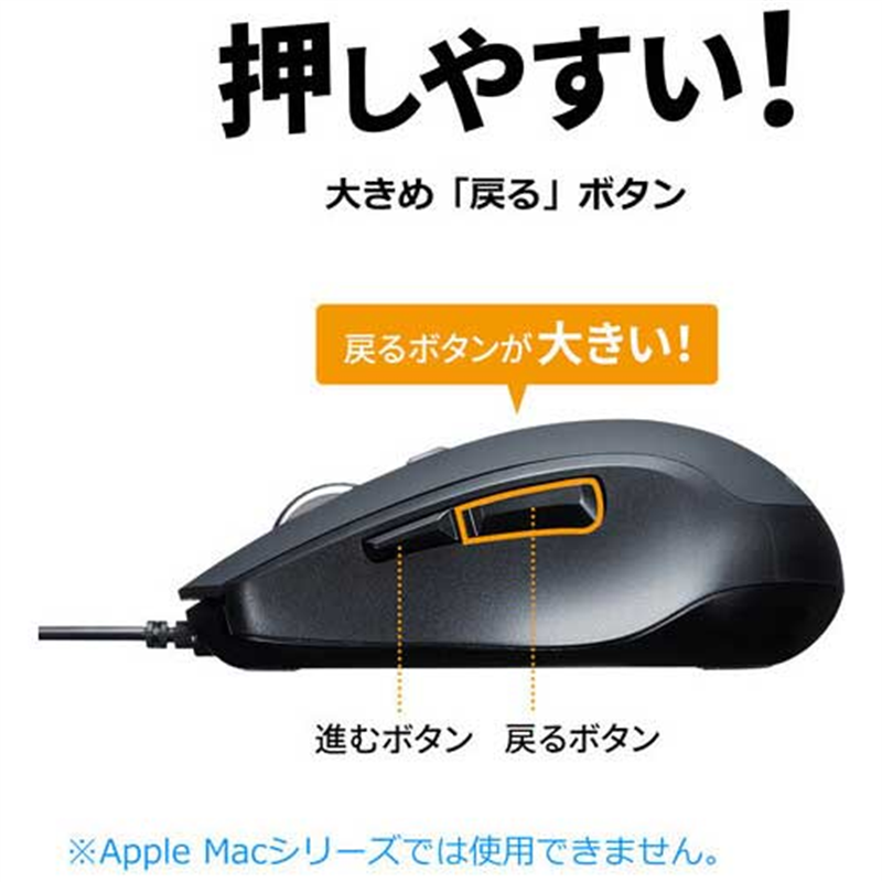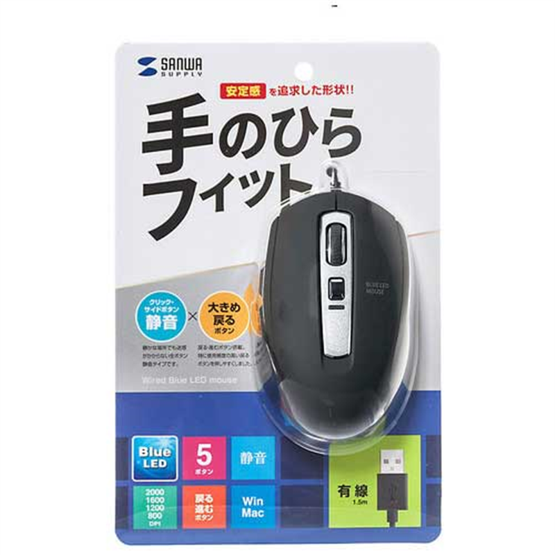 サンワサプライ 有線静音BlueLEDマウス MA-BL163BK 1個(ご注文単位1個)【直送品】