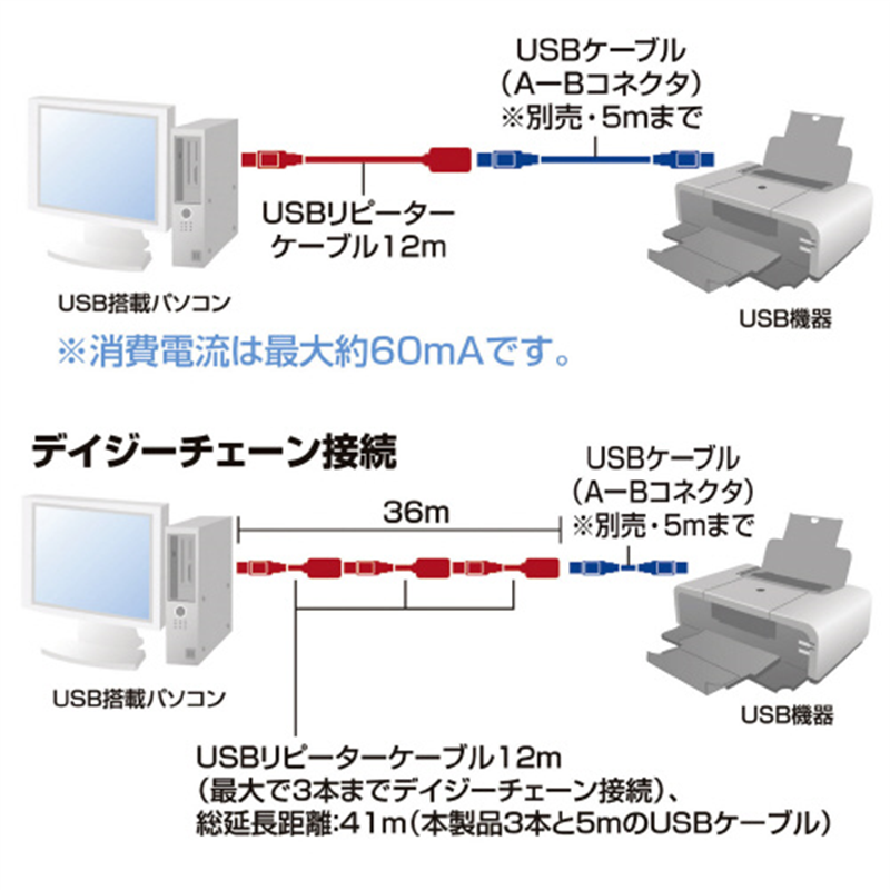 サンワサプライ 12m延長USBリピーターケーブルKB-USB-R212N 1個(ご注文単位1個)【直送品】
