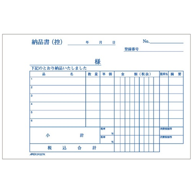 アピカ 納品書 DF227受領書付A6ヨコ 3枚 1個(ご注文単位1個)【直送品】