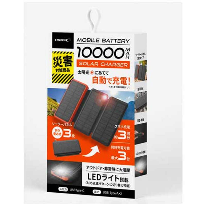HIDISC モバイルバッテリーパネル3枚HD-S3MB10TABK 1個(ご注文単位1個)【直送品】