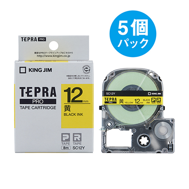 キングジム テプラPROテープ 黄に黒文字 12mm 5本 1個(ご注文単位1個)【直送品】