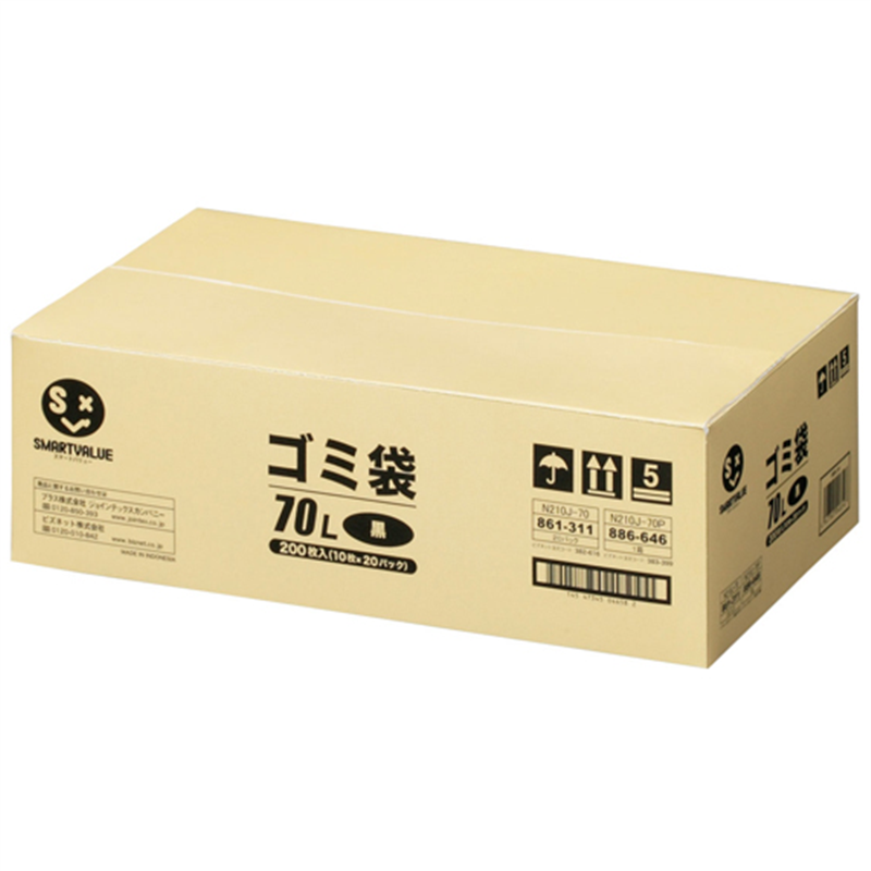 スマートバリュー ゴミ袋 LDD 黒 70L 200枚 N210J-70P 1個(ご注文単位1個)【直送品】