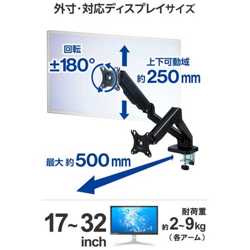エレコム ガススプリングモニターアーム デュアル 1個(ご注文単位1個)【直送品】