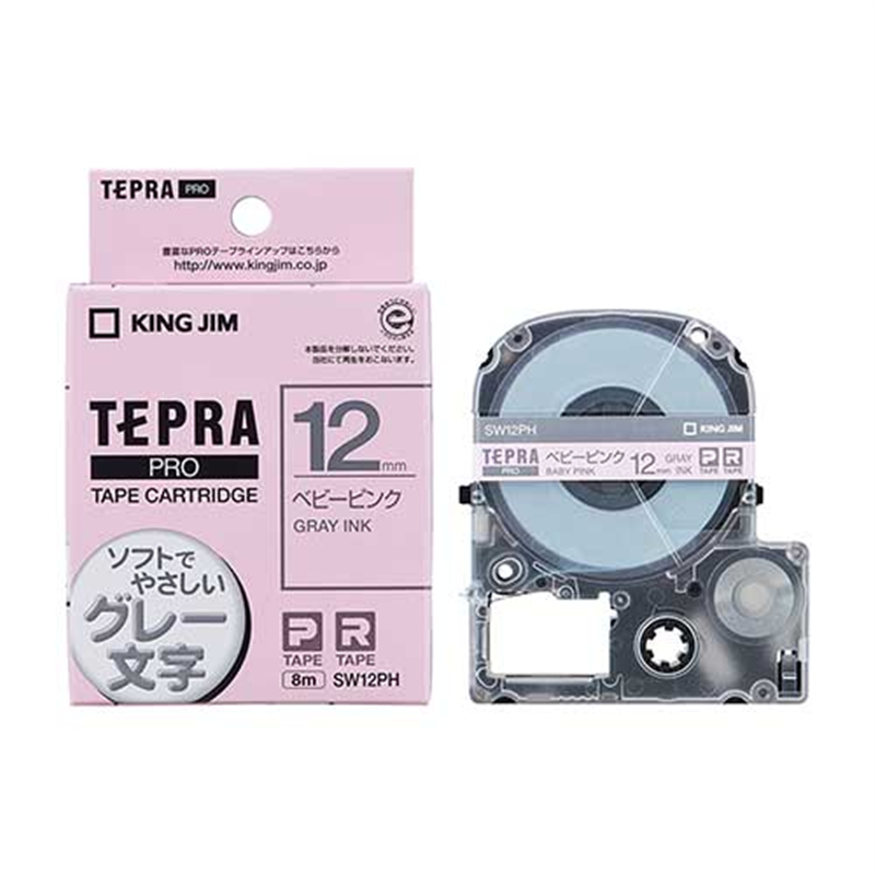 キングジム テプラPROテープ SW12PH ピンク グレー字 1個(ご注文単位1個)【直送品】