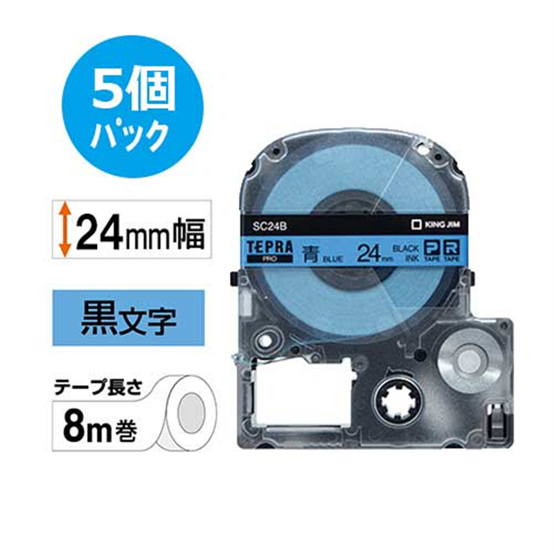 キングジム テプラPROテープカラーラベル青 SC24B-5P 1個(ご注文単位1個)【直送品】