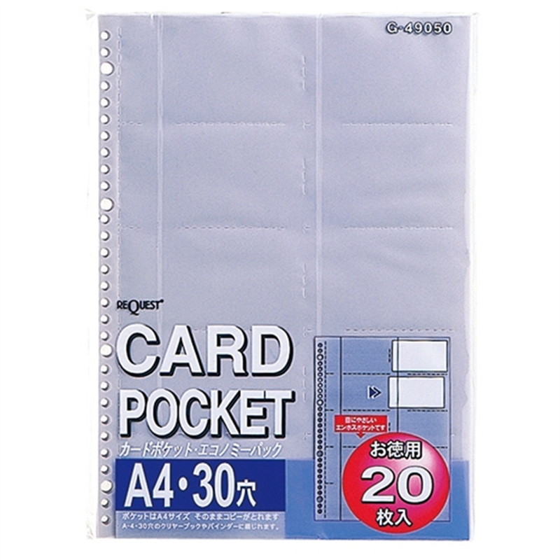 LIHIT LAB. クリヤーポケット 名刺用 G49050 A4 30穴 1個(ご注文単位1個)【直送品】