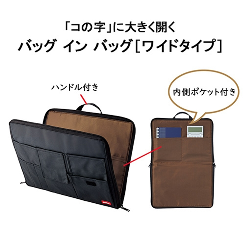 LIHIT LAB. バッグ イン バッグ ワイドA4 A-7559-24 黒 1個(ご注文単位1個)【直送品】