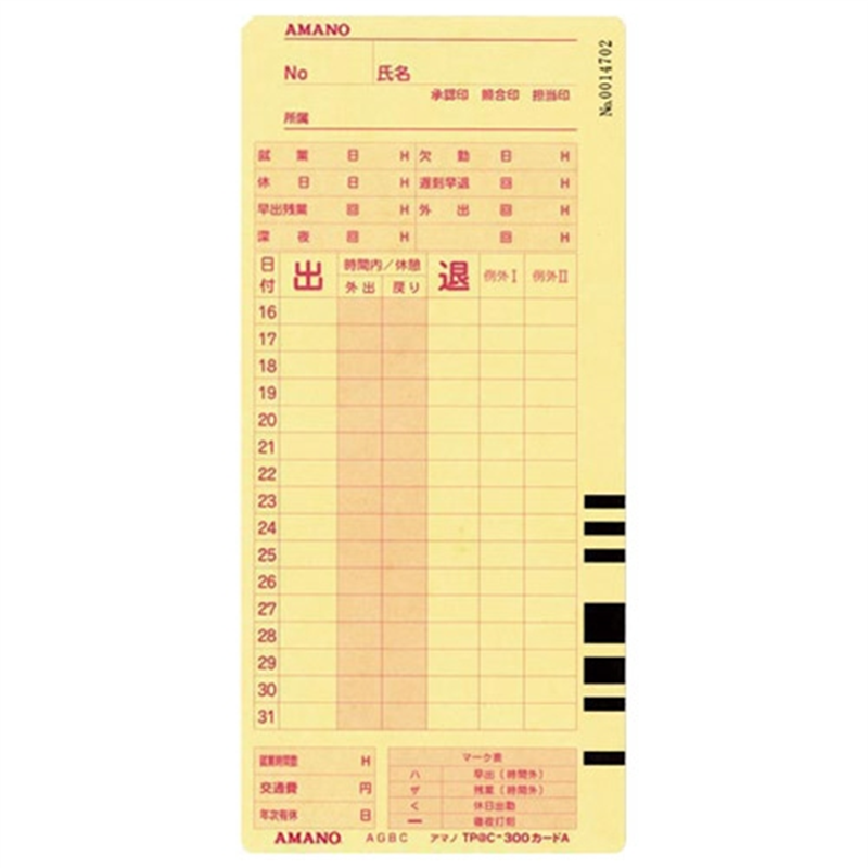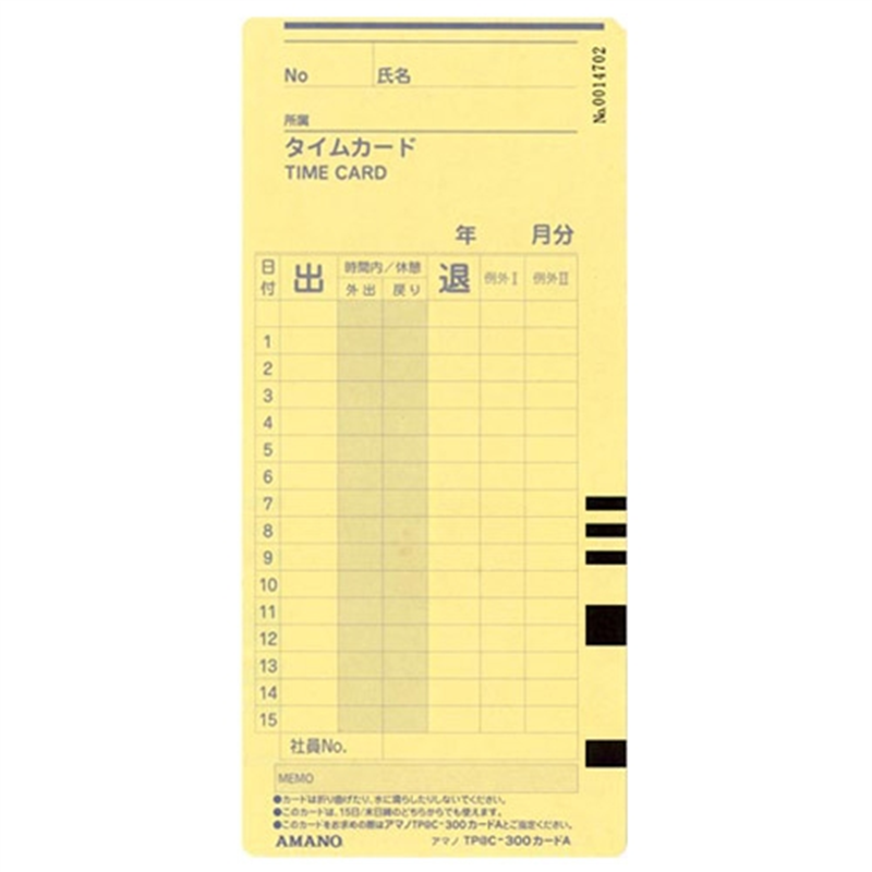 アマノ タイムパックカード(6欄印字)A 1個(ご注文単位1個)【直送品】