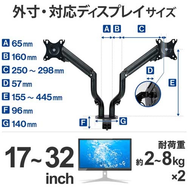 エレコム スプリングモニターアーム ダブル 1個(ご注文単位1個)【直送品】