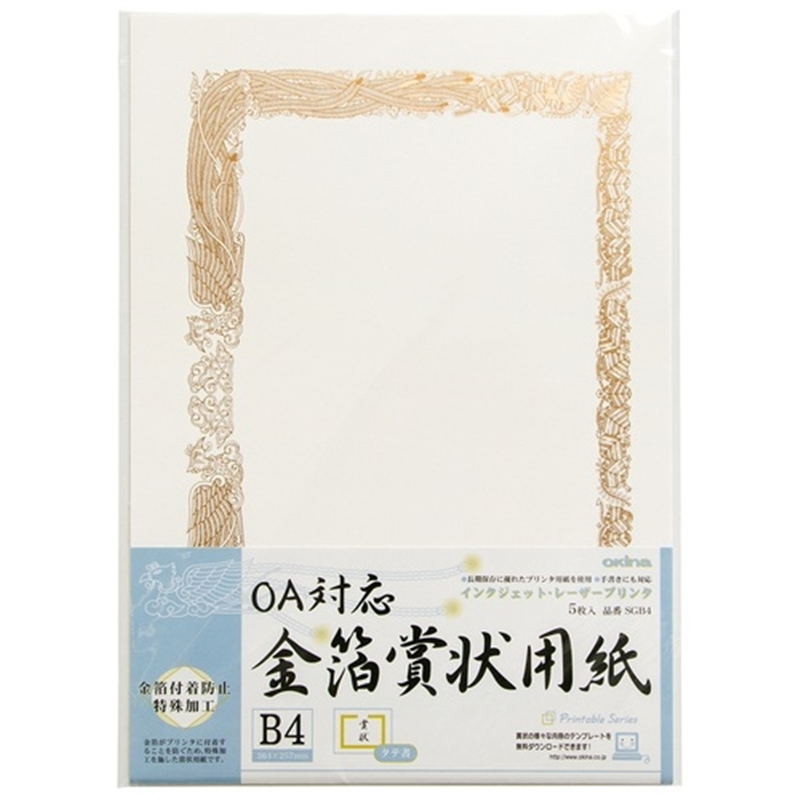 オキナ OA対応金箔賞状用紙 B4縦書 5枚 SGB4 1個(ご注文単位1個)【直送品】