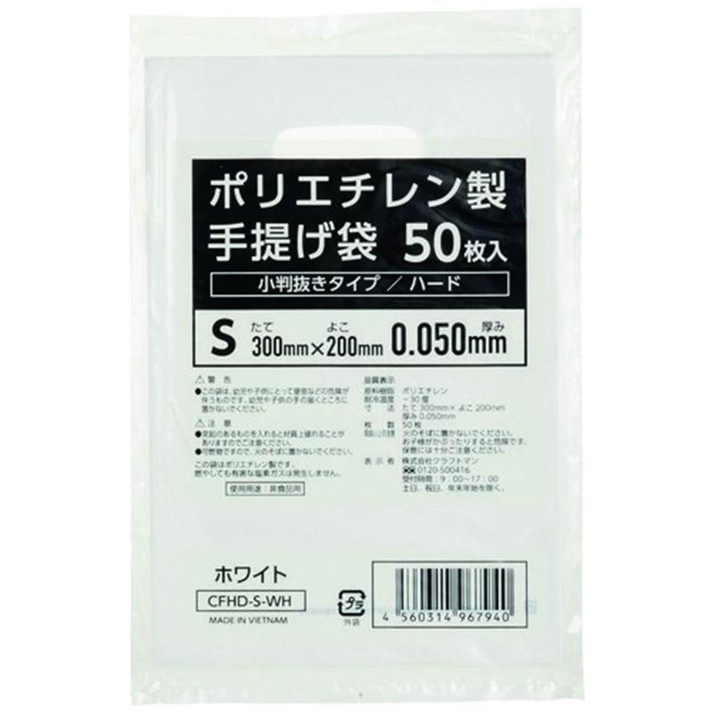 クラフトマン 手提げ袋 HDPE ホワイト S CFHD-S-WH 1個(ご注文単位1個)【直送品】