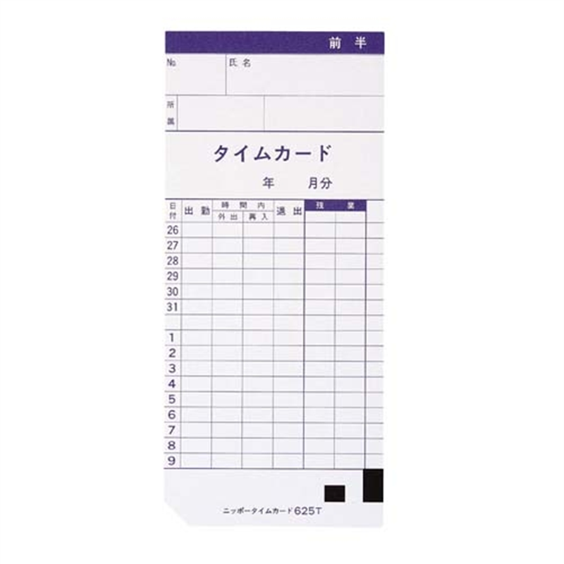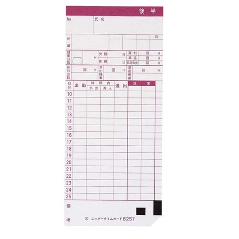 ニッポー タイムカード 625T 100枚 1個(ご注文単位1個)【直送品】