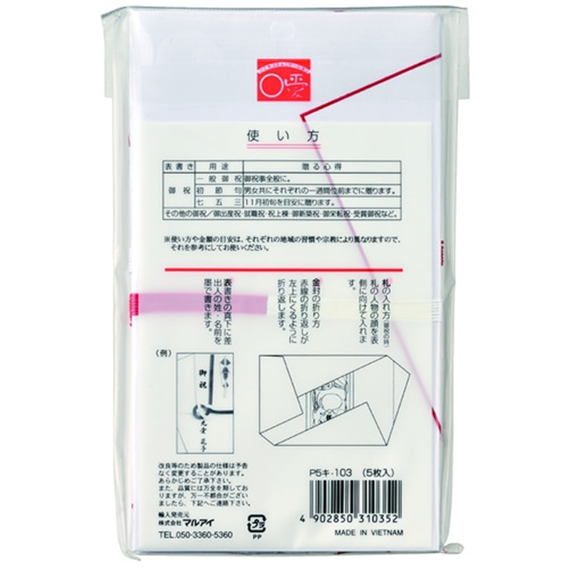マルアイ 祝金封 赤白7本斜折 5枚パック 1個(ご注文単位1個)【直送品】