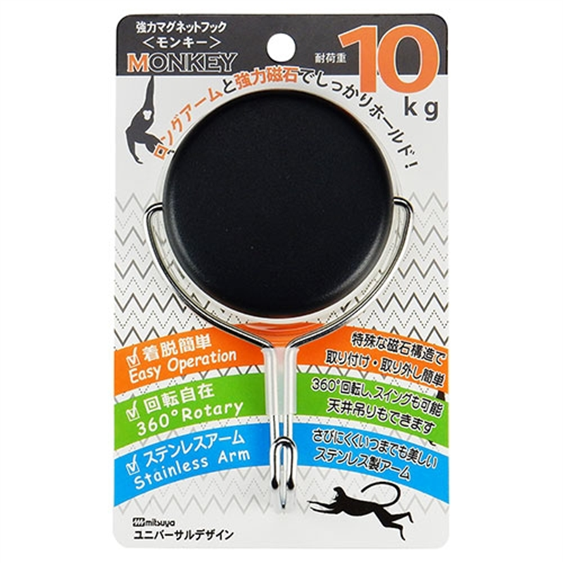 ミツヤ 強力マグネットフックMKY-10-BK 黒 10kg 1個(ご注文単位1個)【直送品】